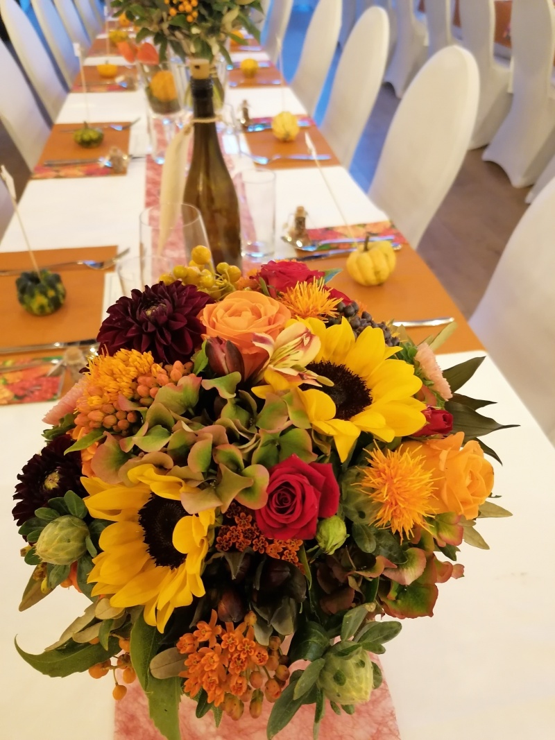 - Jedes Arrangement wird frisch gefertigt und auf dein Unternehmen, die Räumlichkeiten und den Anlass abgestimmt.